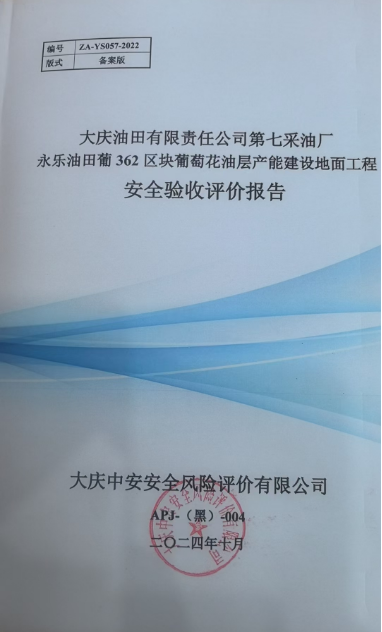 大慶油田有限責(zé)任公司第七采油廠永樂(lè)油田葡362區(qū)塊葡萄花油層產(chǎn)能建設(shè)地面工程安全驗(yàn)收評(píng)價(jià)報(bào)告