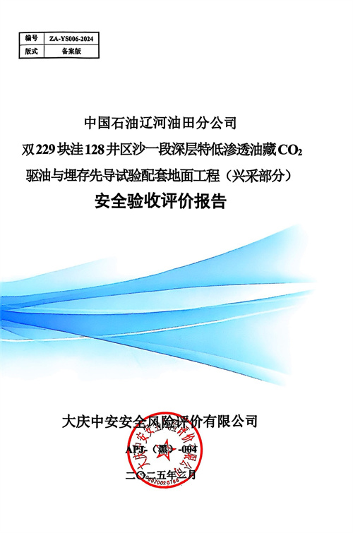 中國(guó)石油遼河油田分公司雙229塊洼128井區(qū)沙一段深層特低滲透油藏CO2驅(qū)油與埋存先導(dǎo)試驗(yàn)配套地面工程(興采部分)安全驗(yàn)收評(píng)價(jià)報(bào)告